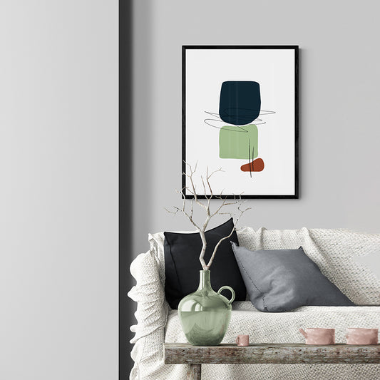 Soft Abstract Shapes Teal & Lime Green Framed & Mounted Print