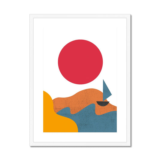 Red Sun & Boat Framed & Mounted Print